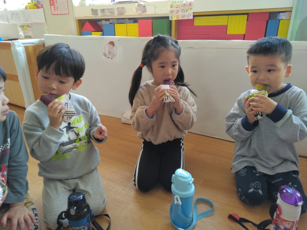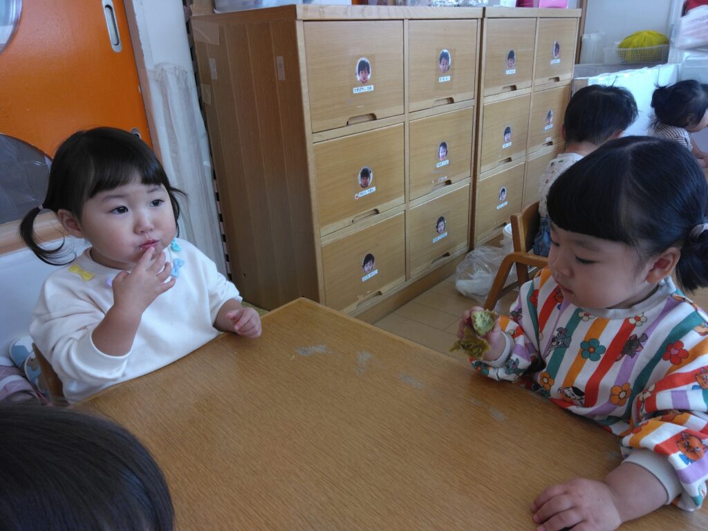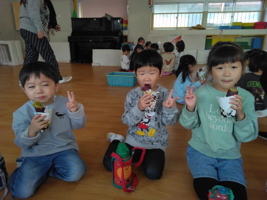 今年のやきいも会は室内で行いました。とてもおいしいサツマイモでしたよ!